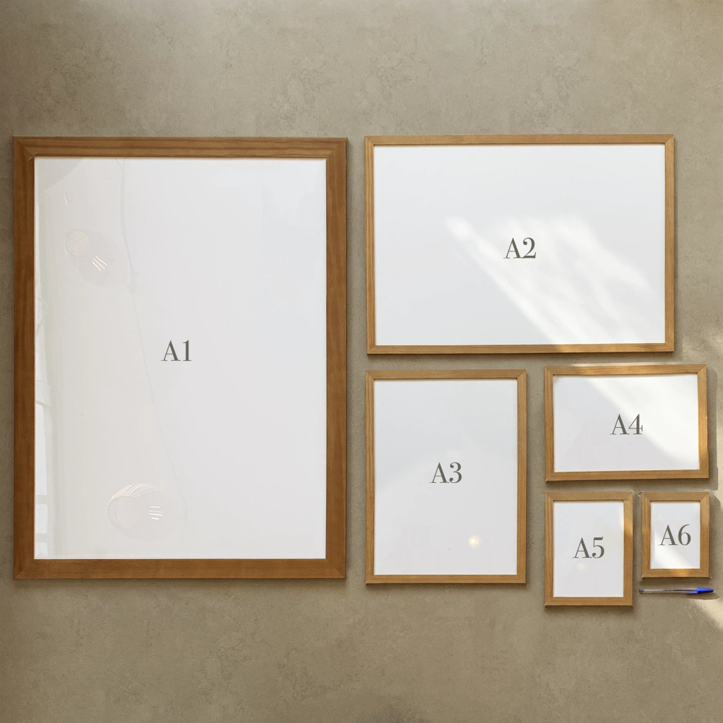 A4 - 25x34 cm COM moldura e 21x30 cm SEM moldura;